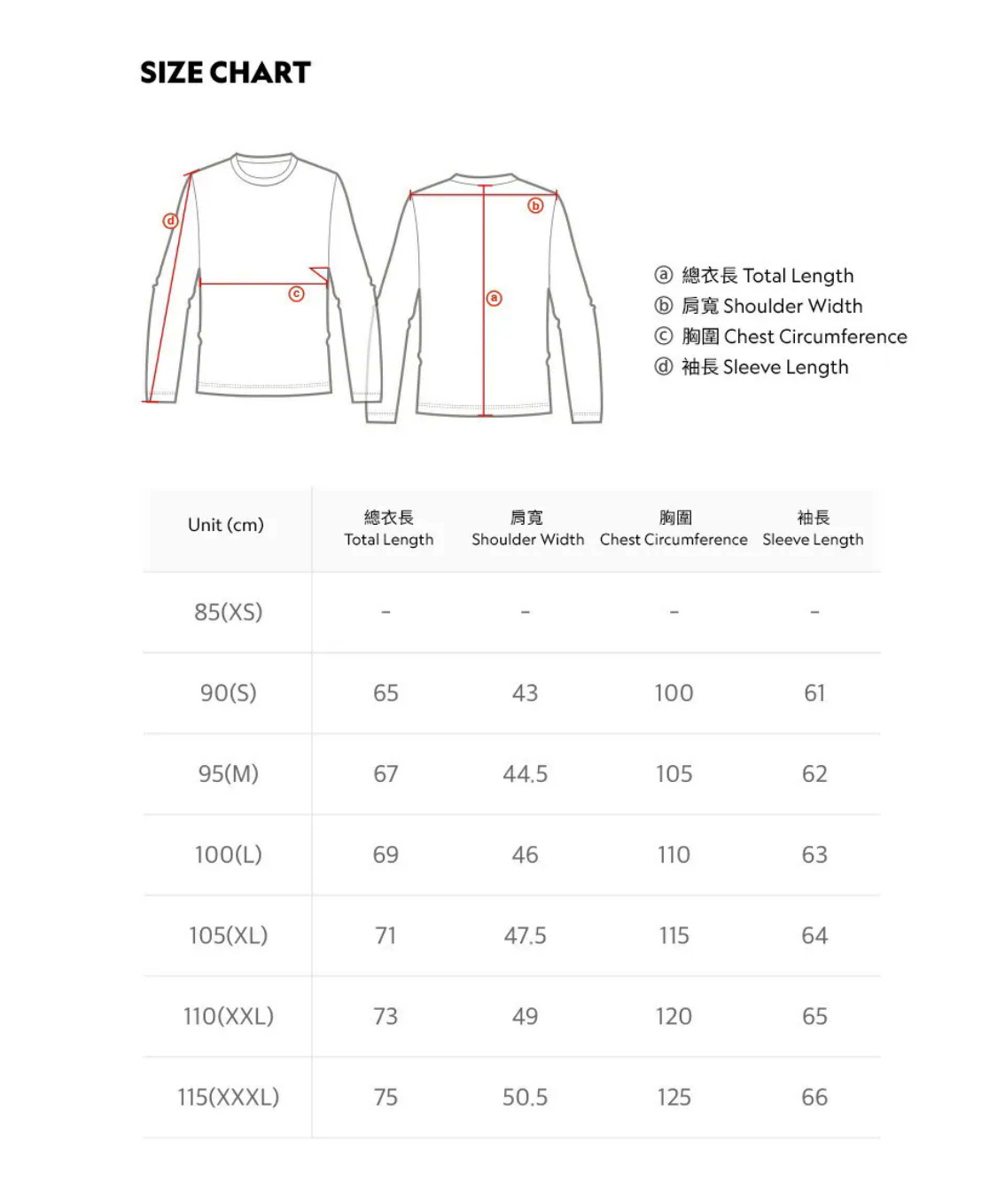 L(100):衣長69cm、胸圍110cm、袖長63cm、肩寬46cm