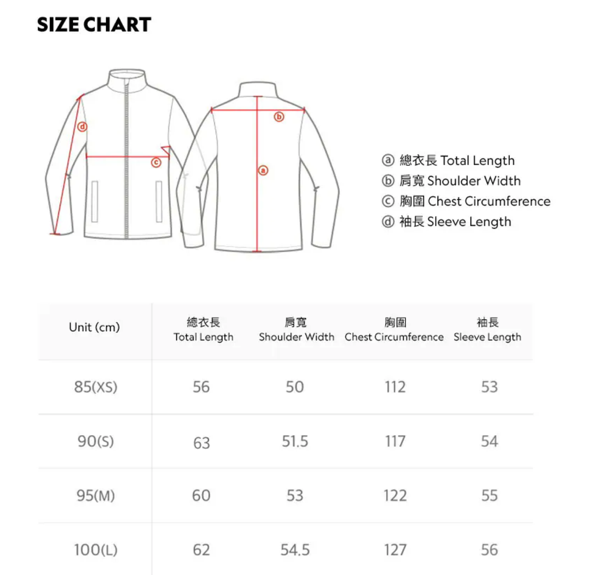 L(100):衣長62cm、胸圍127cm、袖長56cm、肩寬54.5cm