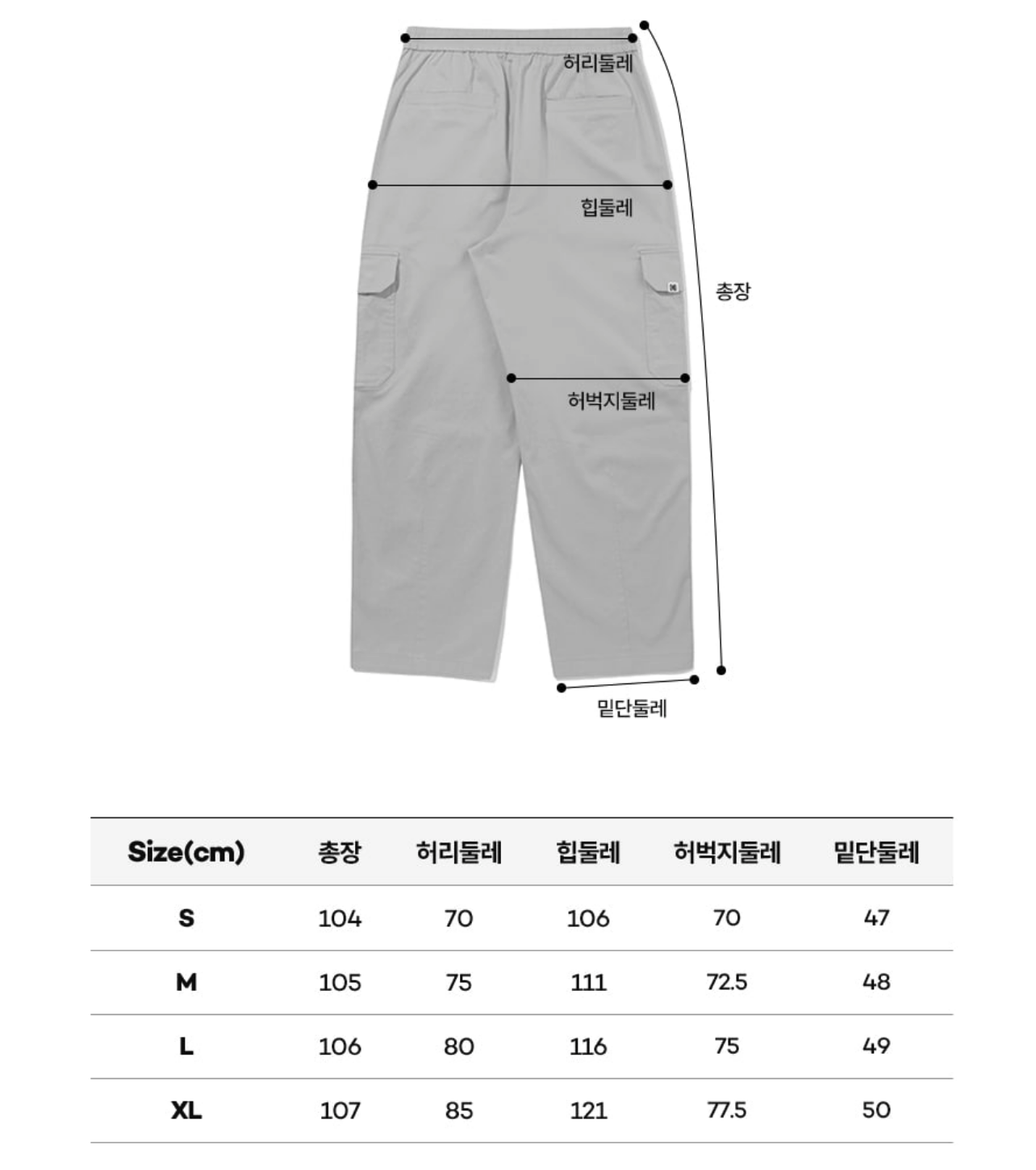 L:腰圍80cm 褲長106cm 褲口寬49cm 大腿圍75cm 臀圍116cm