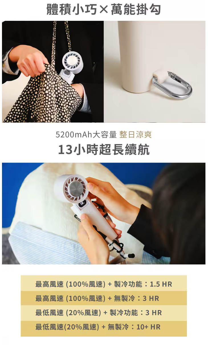 ✦ 5200mAh 超長續航|最高 13H 持久涼感