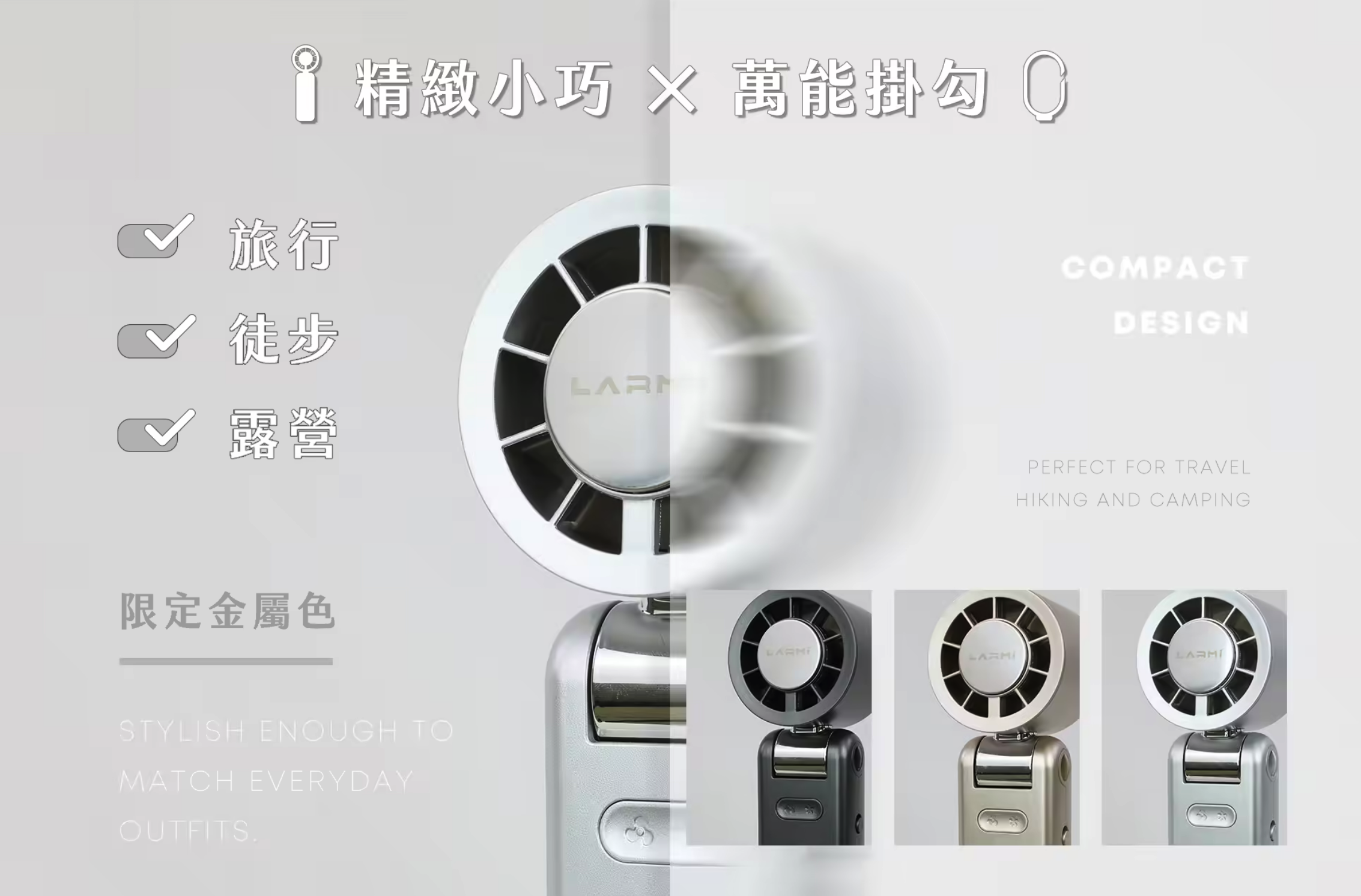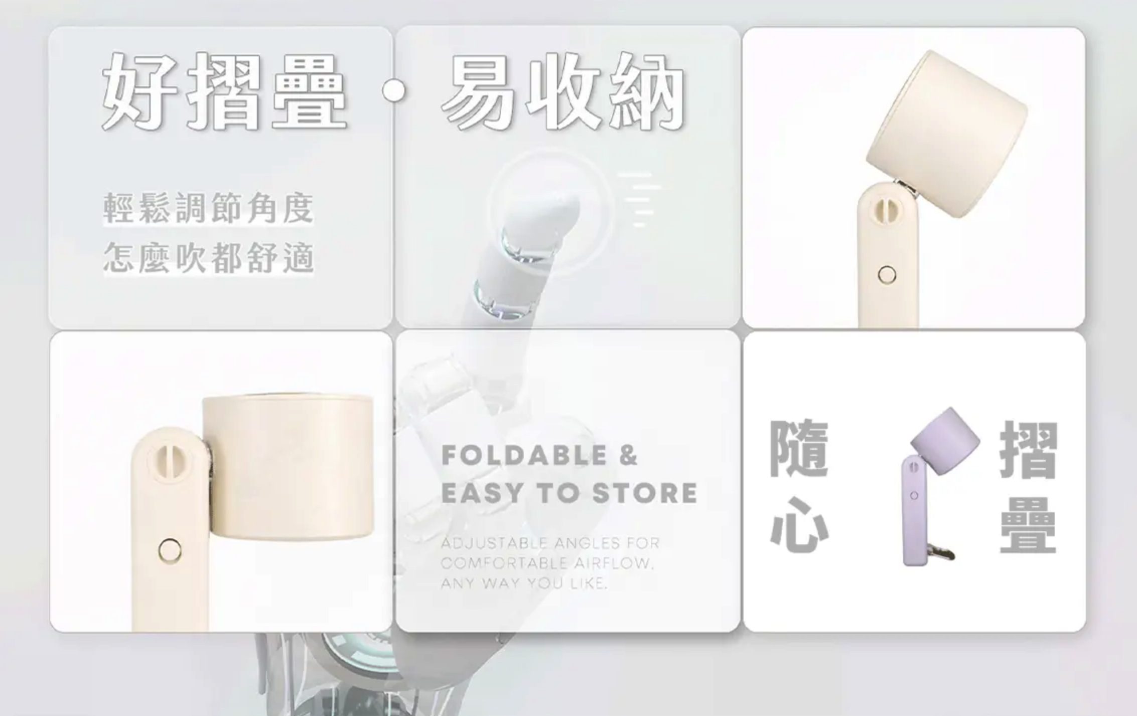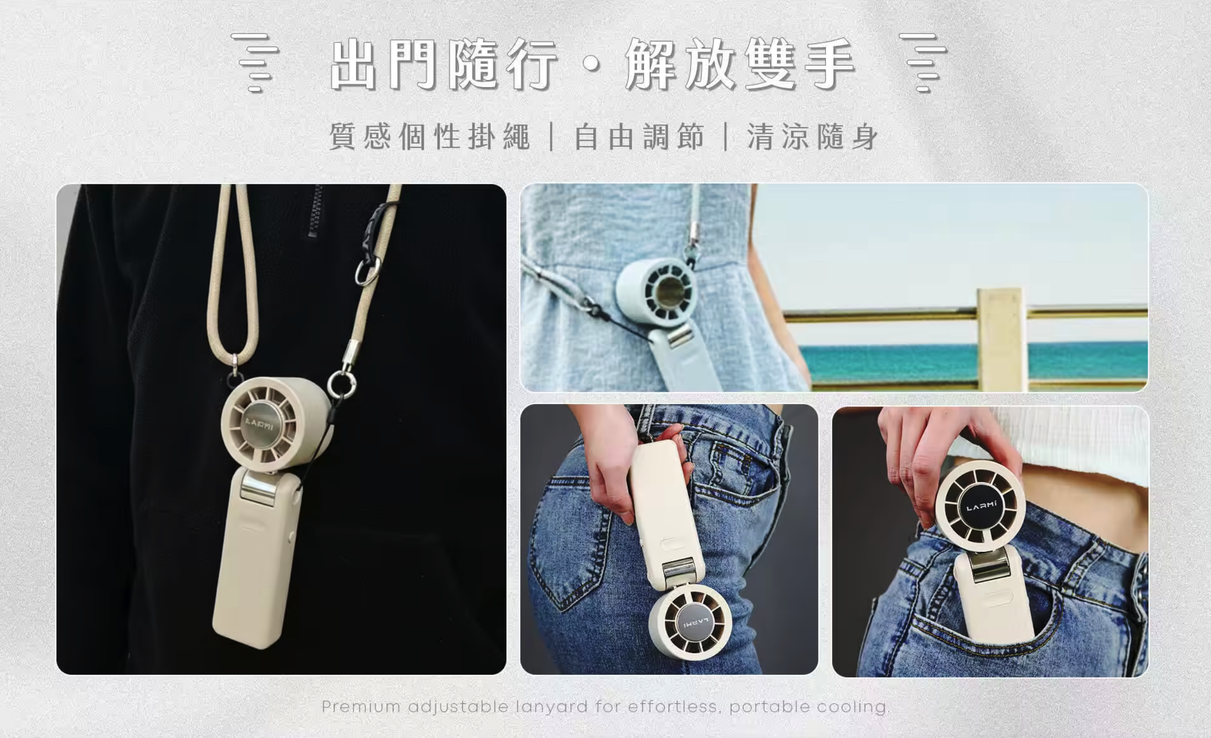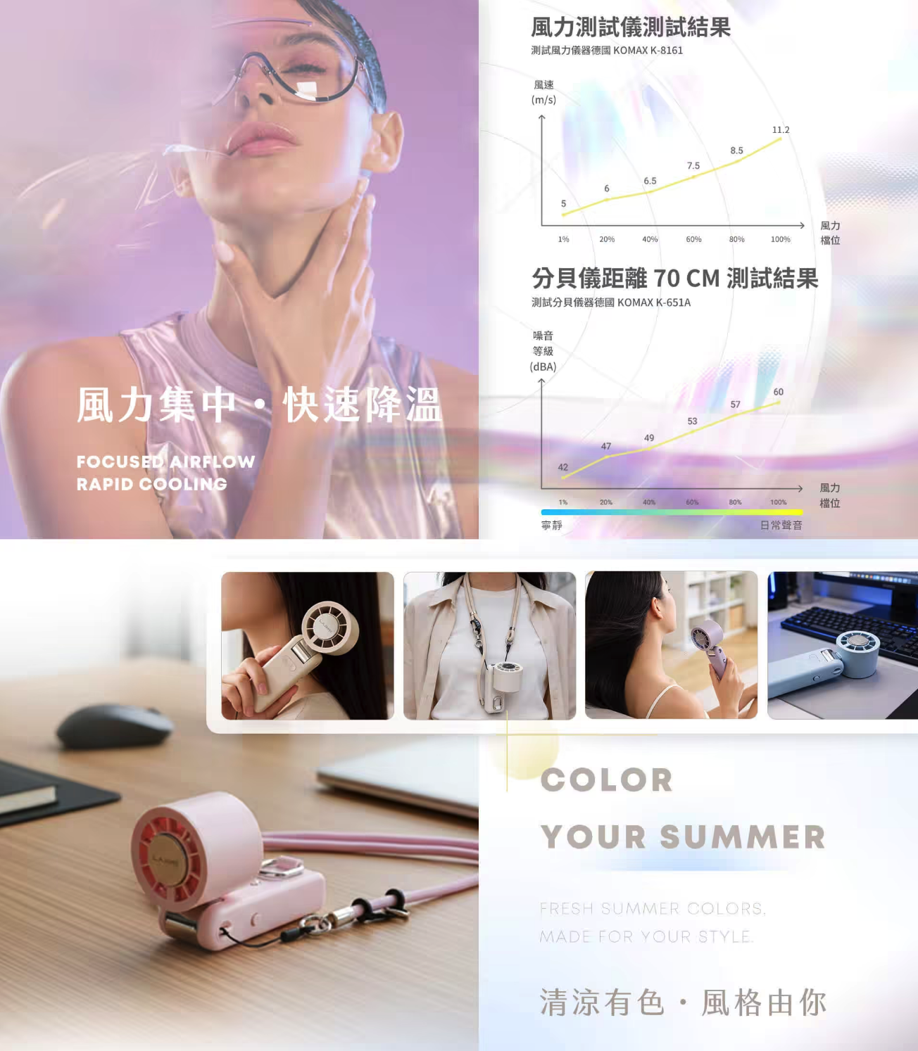 ✦180° 自由旋轉|手持桌放掛脖,精準吹送涼感
