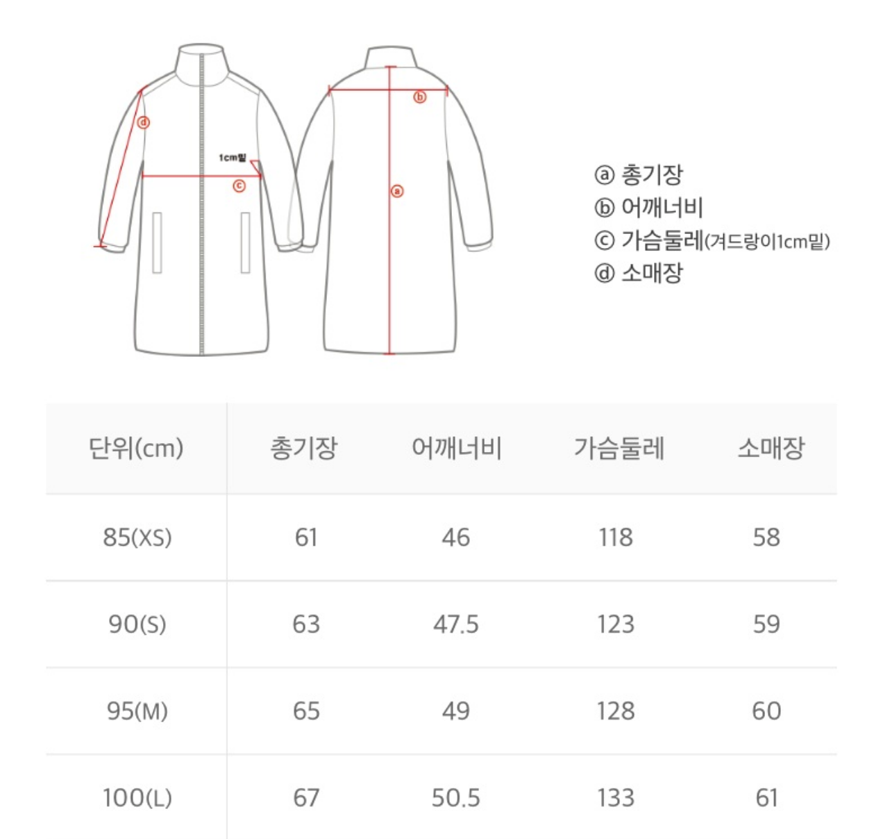 XS(85):衣長61cm、胸圍118cm、袖長58cm 、肩寬46cm