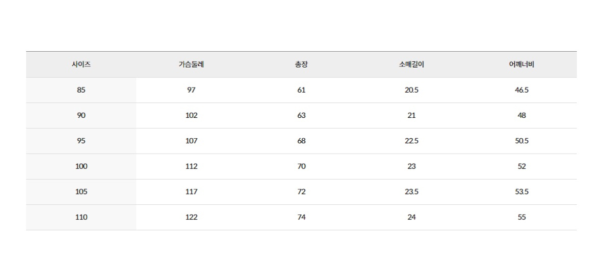 XS(85):胸圍97cm、衣長61cm、袖長20.5cm、肩寬46.5cm