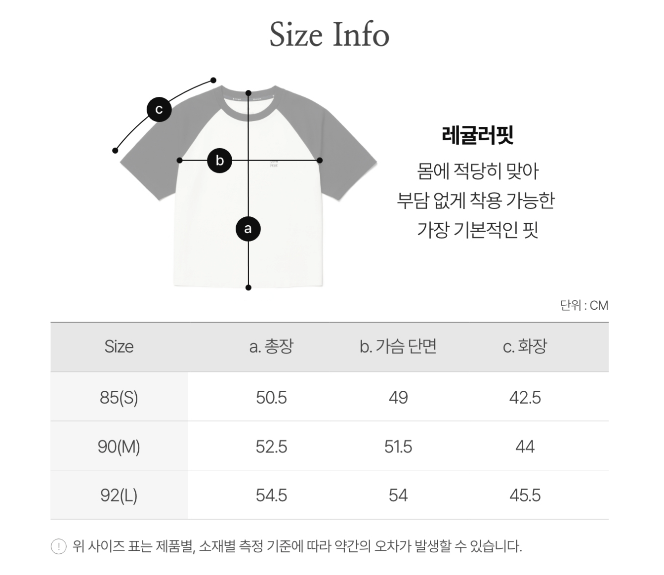 S(85):胸圍98cm、衣長50.5cm、袖長42.5cm