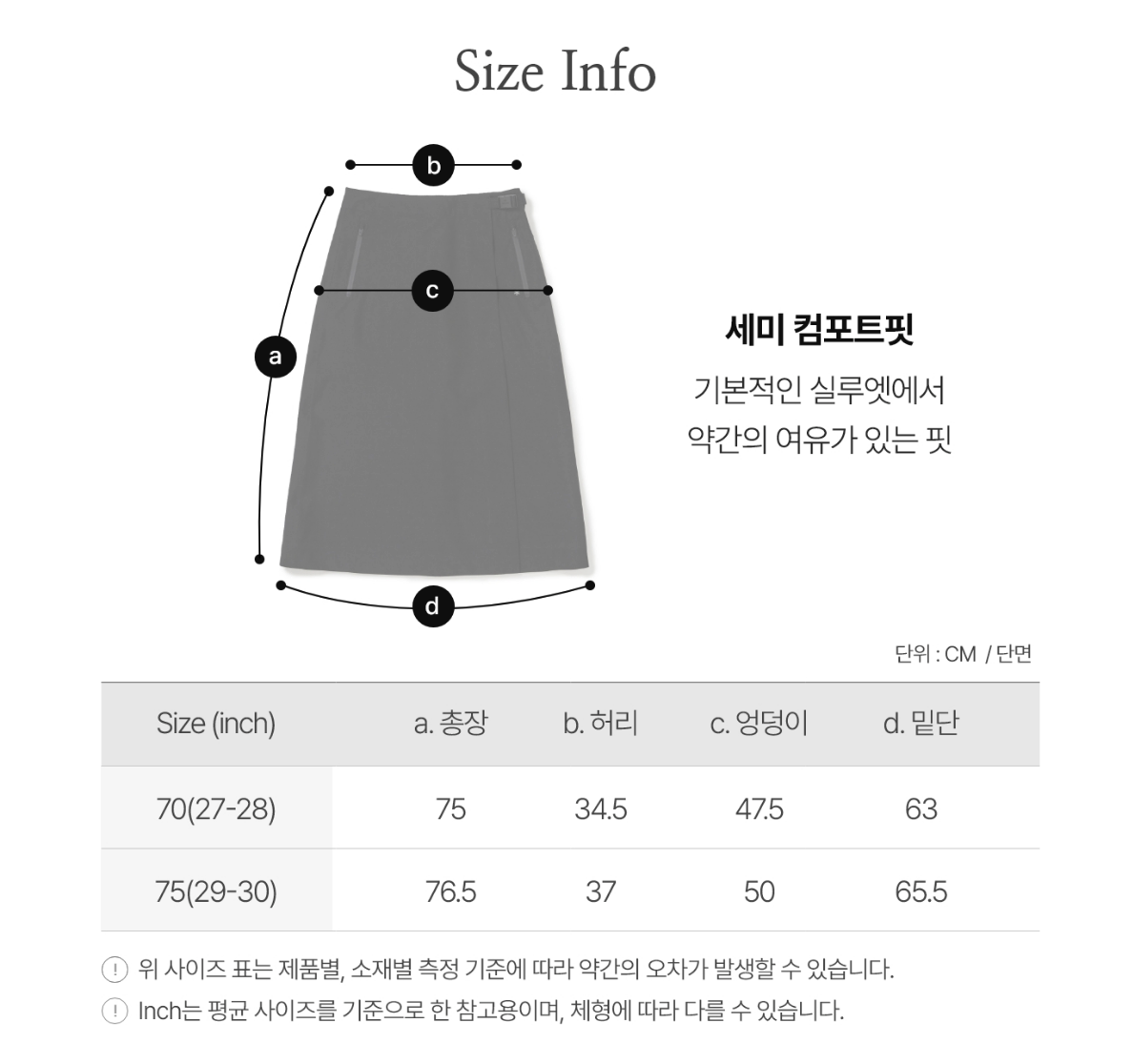 M(75) : 裙長75cm、腰圍69cm、臀圍95cm、下擺圍126cm