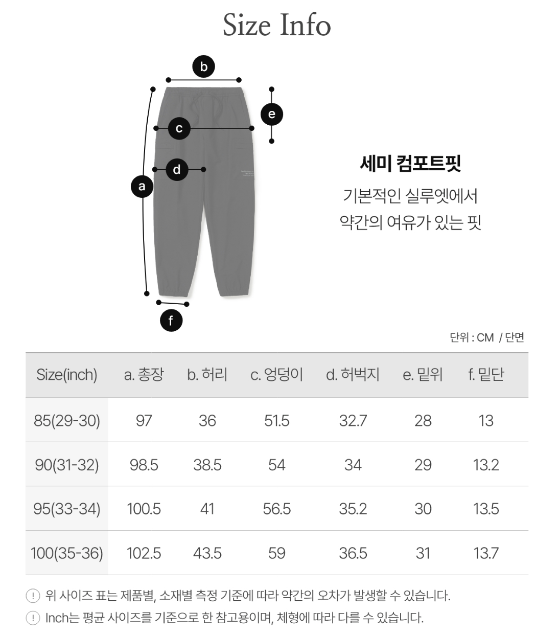 L(90) : 腰圍77cm 褲長98.5cm 褲口寬13.2cm 大腿圍68cm 臀圍108cm