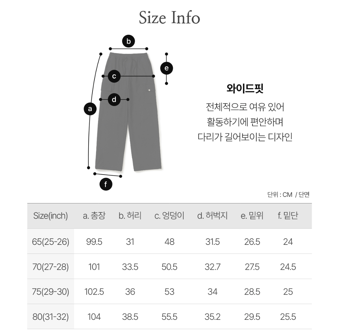 L(80) : 腰圍77cm 褲長104cm 褲口寬25.5cm 大腿圍70.4cm 臀圍111cm