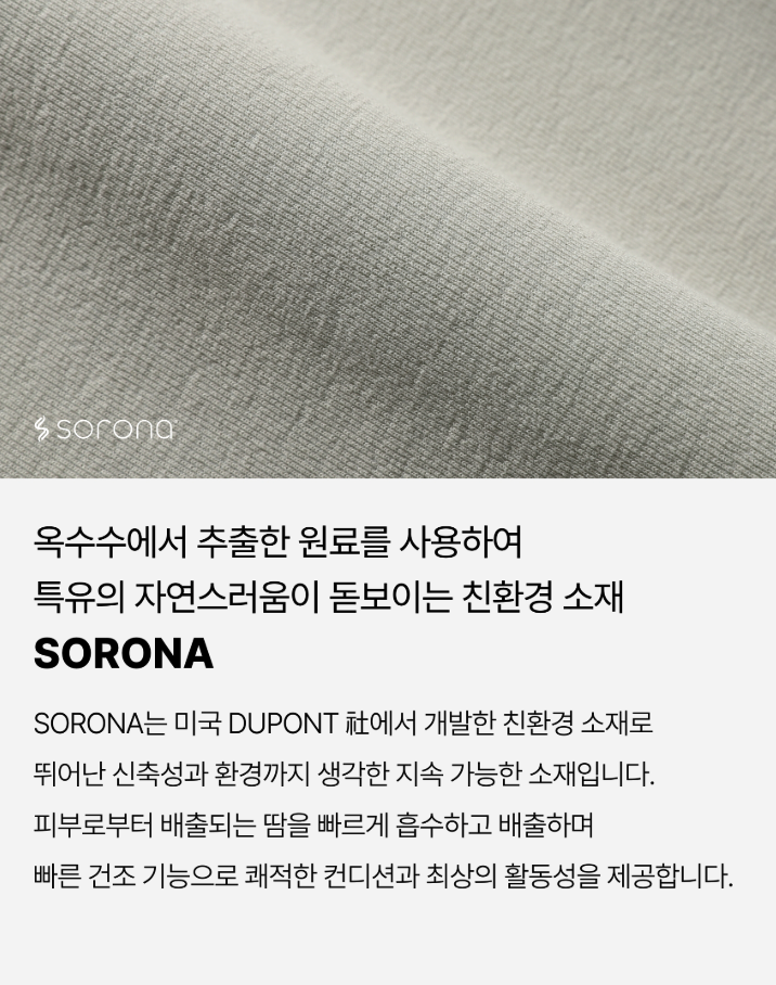 面料採用杜邦 sorona材質 ,具有速乾、涼感、抗菌、彈性、不易起毛球、變形的特色,