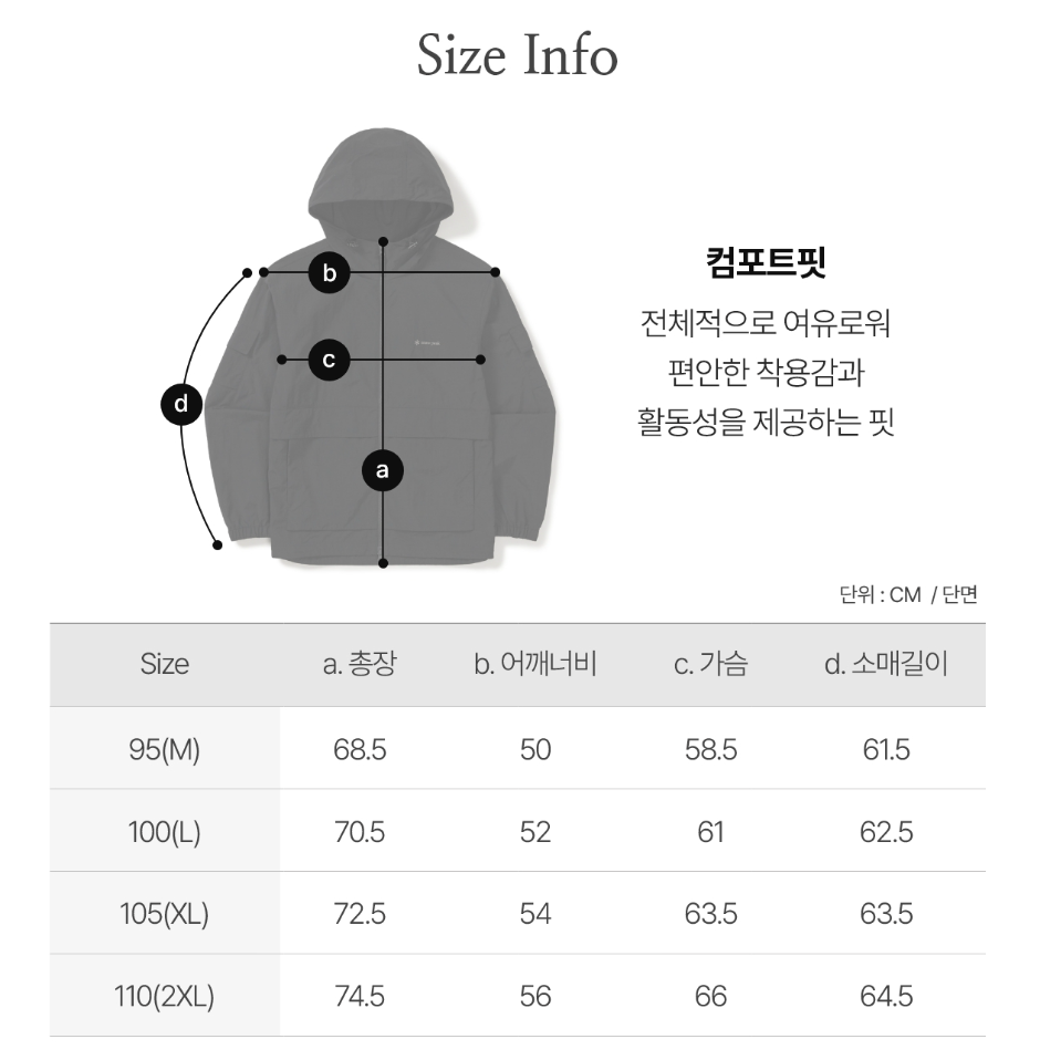M(95):衣長68.5cm、肩寬50cm、胸圍117cm、袖長61.5cm