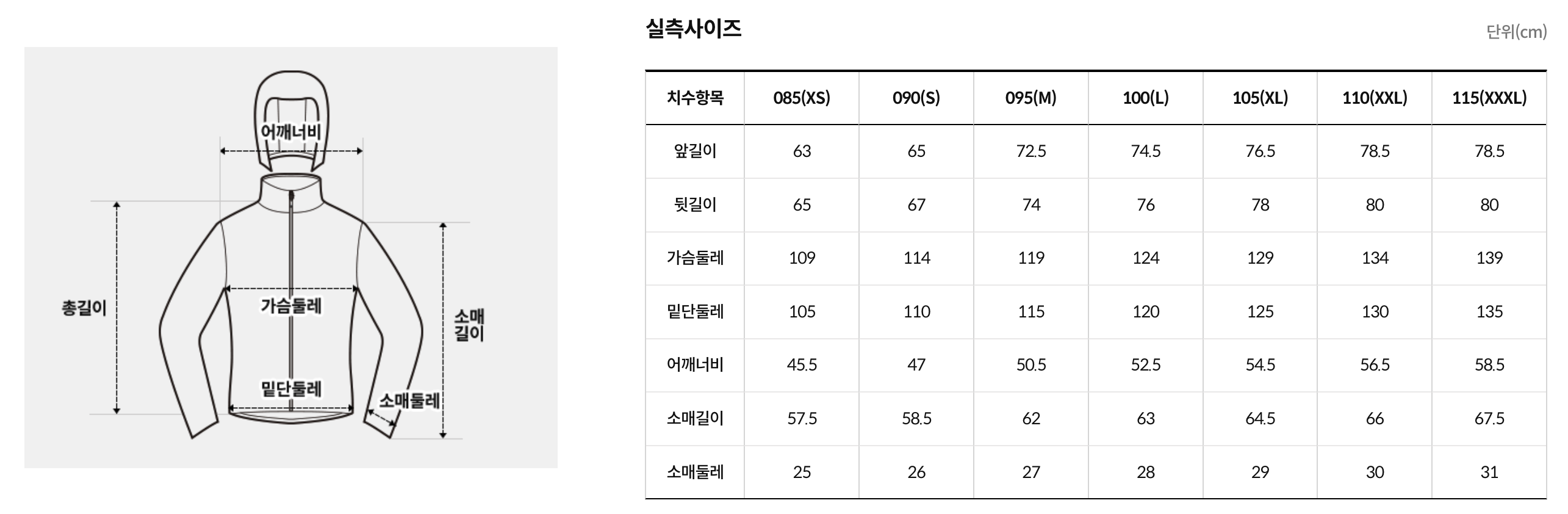 M(95):衣長72.5cm 胸圍119cm 肩寬50.5cm 袖長62cm